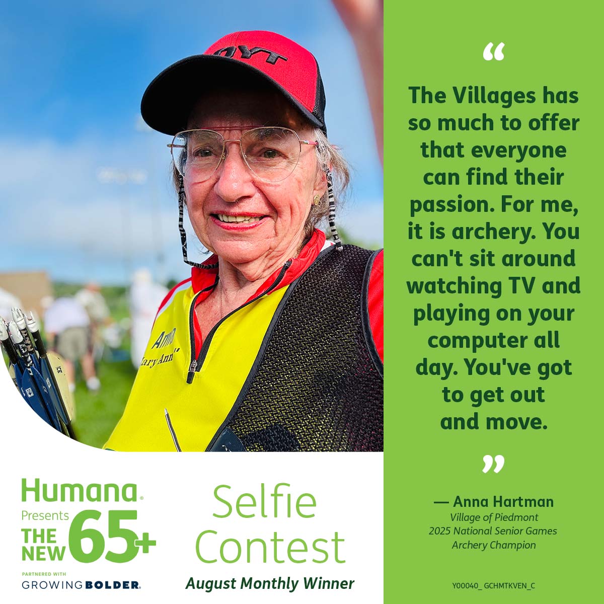 Congratulations to Anna Hartman for being named the August monthly winner of The New 65+ Selfie Contest in The Villages, presented by Humana!