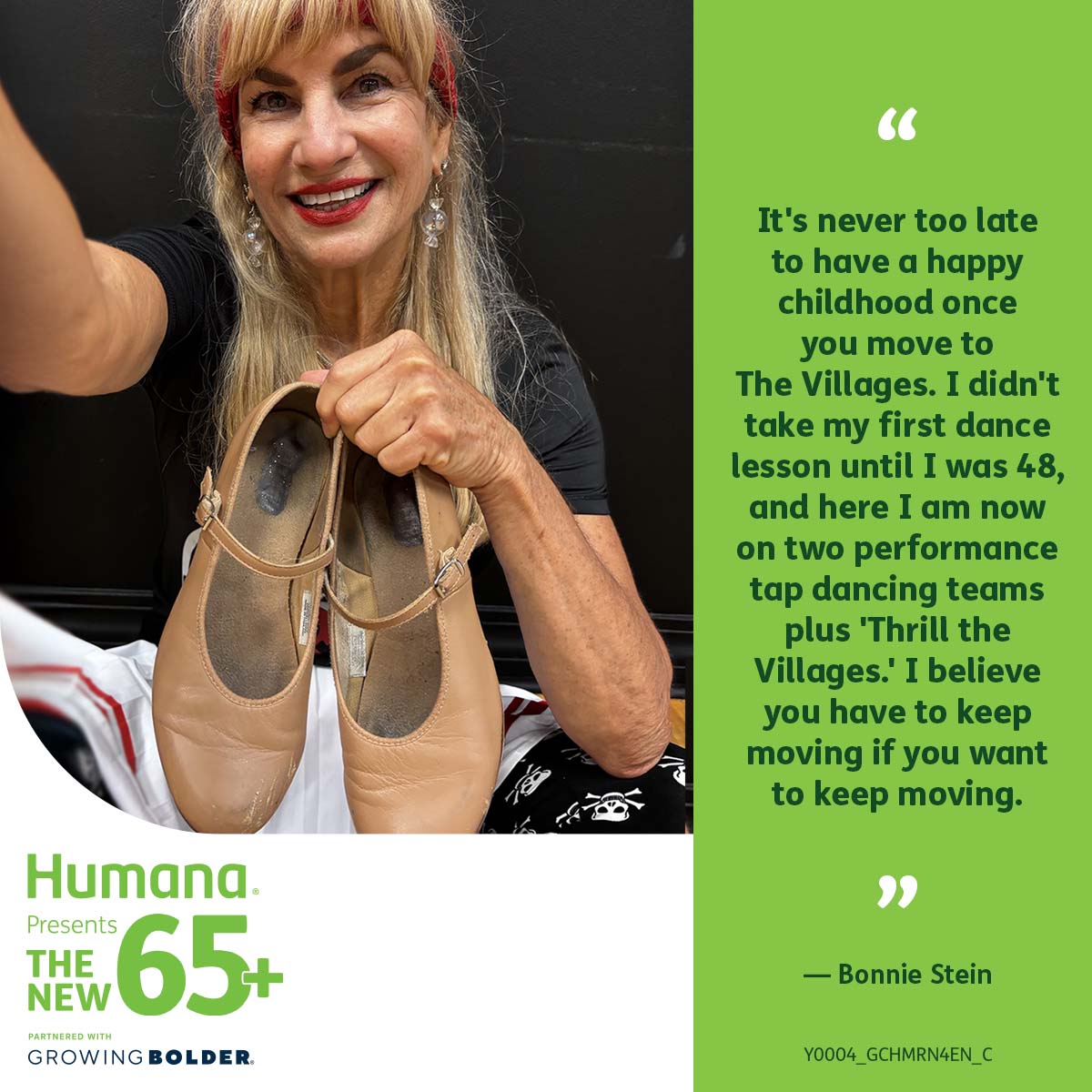 “It’s never too late to have a happy childhood. It’s never too late to do the thing you always wanted to do,” says Bonnie Stein, a dancer, race walker, coach and teacher in The Villages, FL.