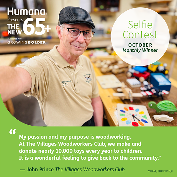 Congratulations to John Prince for being named the latest monthly winner of The New 65+ Selfie Contest in The Villages, presented by Humana!