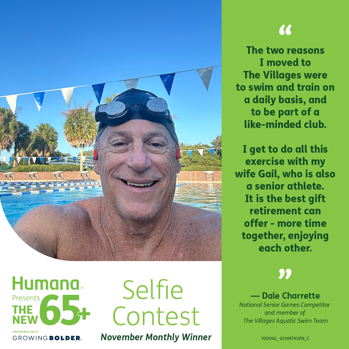 Congratulations to Dale Charrette for being named the final monthly winner of The New 65+ Selfie Contest in The Villages, presented by Humana!