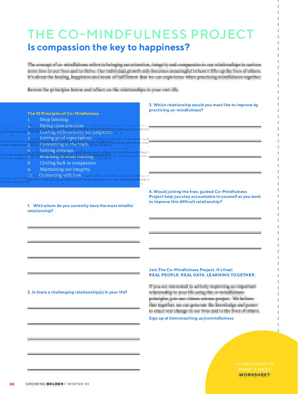 Important questions to ask yourself related to the 10 principles of co-mindfulness.