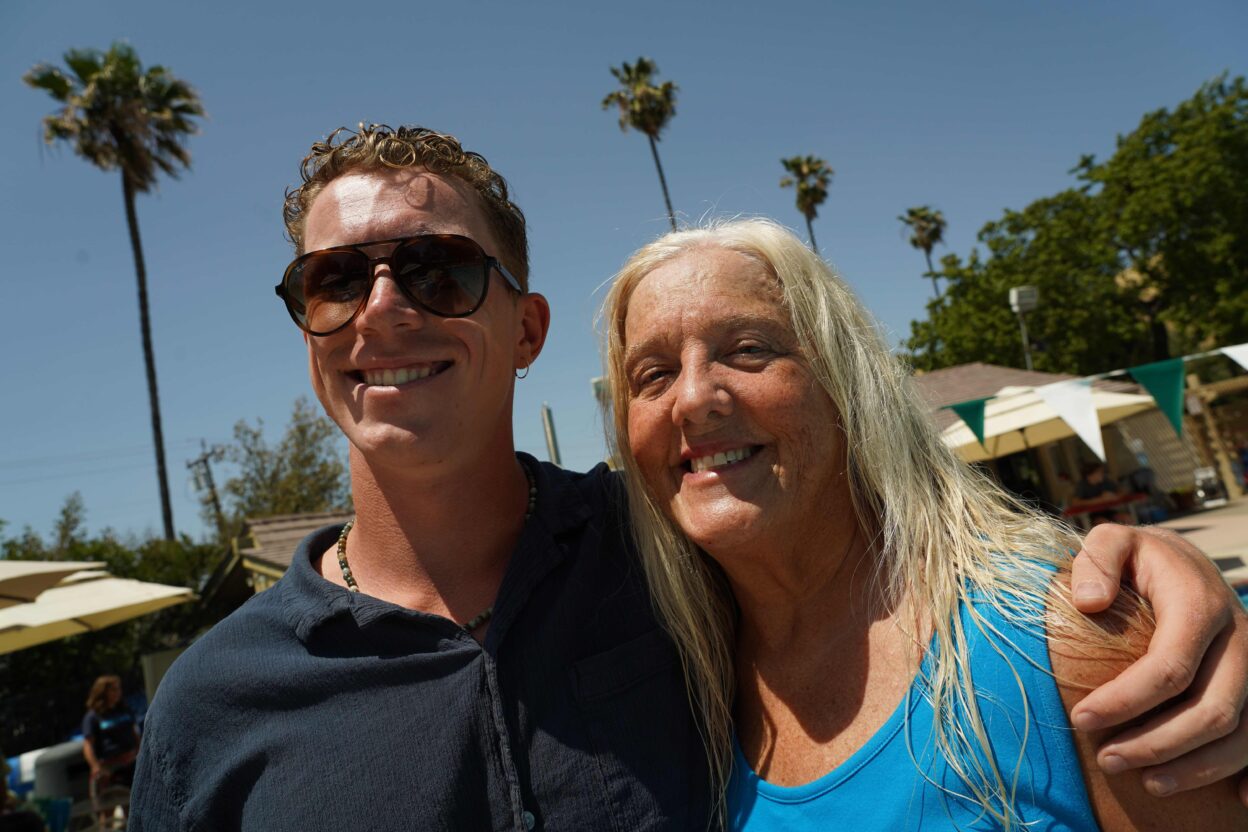 Swimming was a sport Julie watched for years as her son Michael swam on teams from childhood through college. Now it was his turn to be a spectator and cheer his mom on.